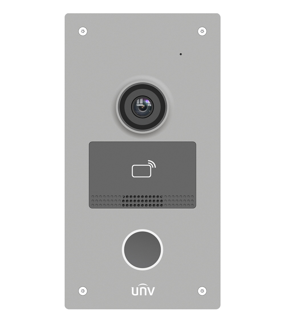 Стандартный PoE/ 12В DC, IC считыватель; Хранилище: 10000 карт, Встроенный микрофон и динамик, 1 RS485 интерфейс, 2 реле, 4 тревожных входа, IP65, IK08, -40°C ~ 60°C, Поддержка приложения UNV-Link