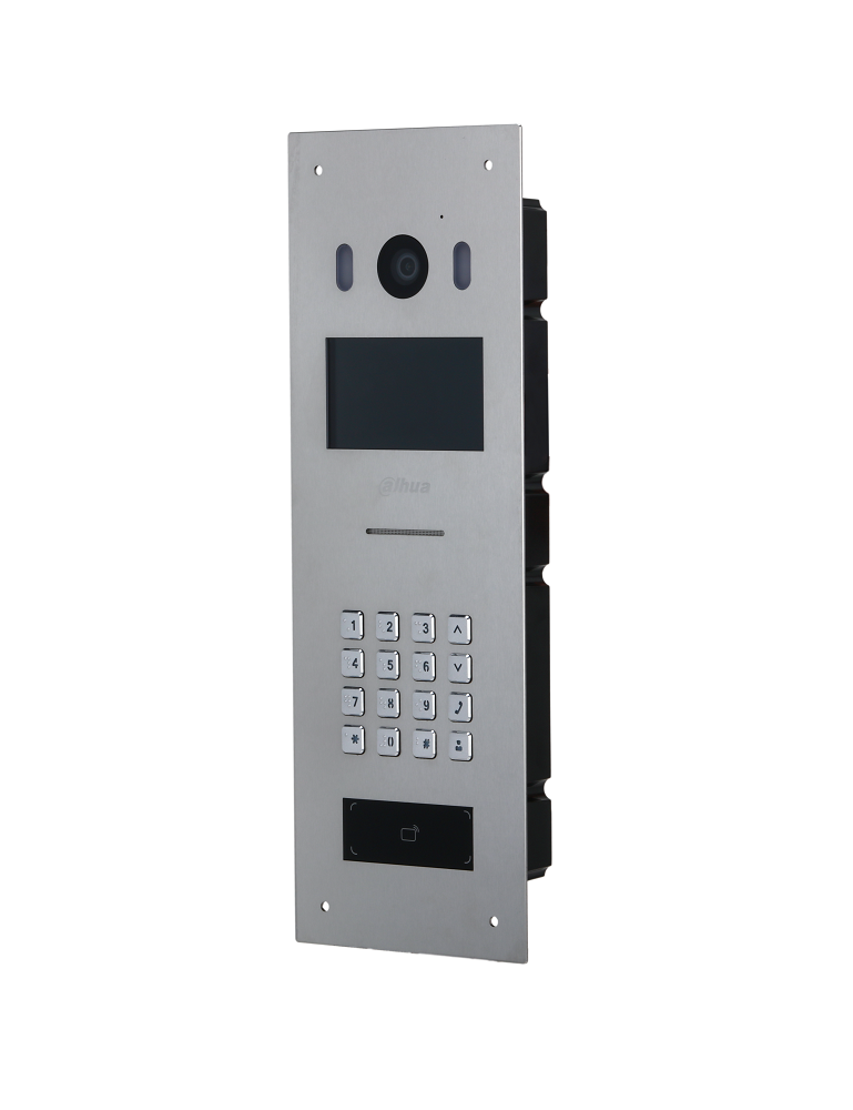 Поддерживает открытие через IC карту, пароль, QR-код и их комбинации. Экран 4.3”,разрешение 800*480; Камера: 1/2.8, 2Mp, 95°, WDR 120 дБ, H.264/H.265. Поддерживает 20000 карт; Поддержка TCP/IP, RS485, Wiegand (вход или выход), тевожные входы/выходы 2/2, выход питания DC12V, 500мА. Питание DC12V, PoE. IP65. Материал корпуса: нержавеющая сталь.