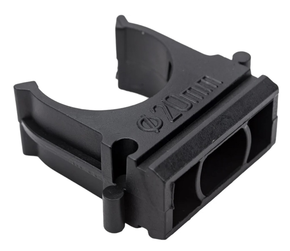Оптимальная форма клипсы с грамотно расположенными ребрами жесткости обеспечивают надежный захват трубы и достаточную жесткость удержания в течении длительного времени.