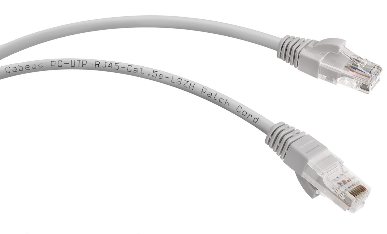 —Cabeus PC-UTP-RJ45-Cat.5e-3m-LSZH Патч-корд U/UTP, категория 5е, 2xRJ45/8p8c, неэкранированный, серый, LSZH, 3м