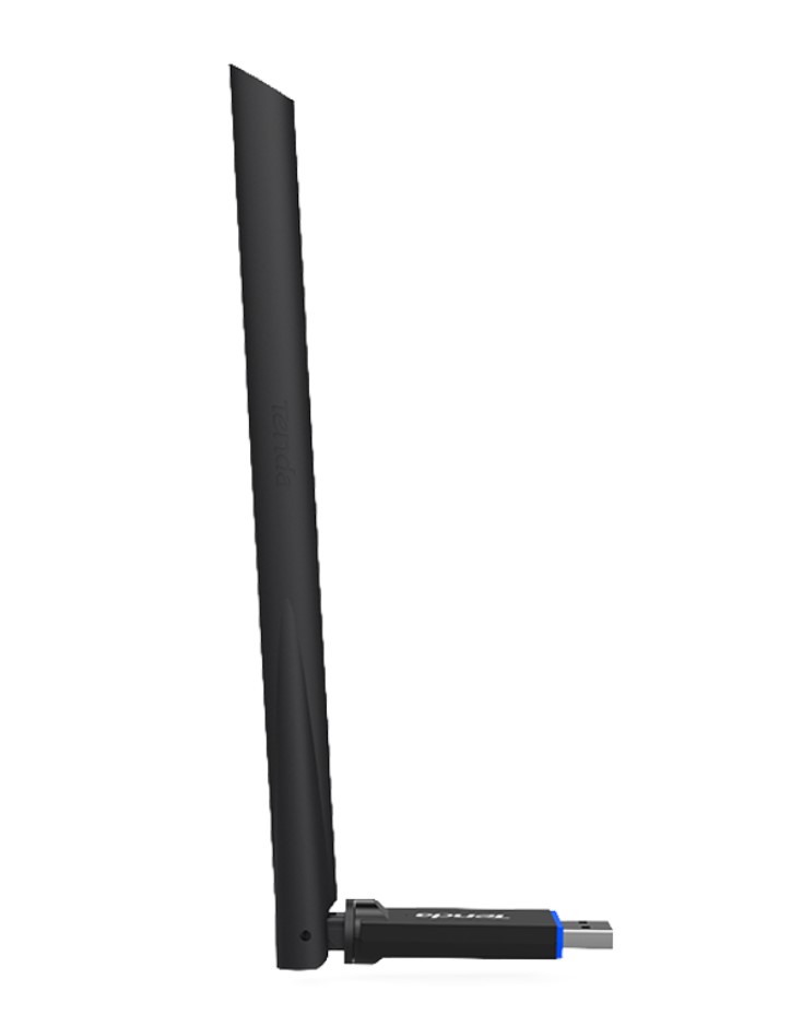 Tenda U11 Pro — высокоскоростной адаптер стандарта Wi-Fi 6 (AX900), обеспечивающий одновременную работу на двух частотных диапазонах с общей скоростью передачи данных до 900 Мбит/с. Устройство оснащено внешней антенной с высоким коэффициентом усиления (6 dBi), что улучшает качество сигнала даже в условиях сильного помехового фона.