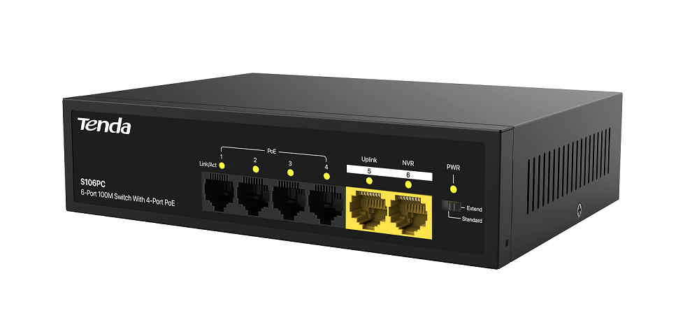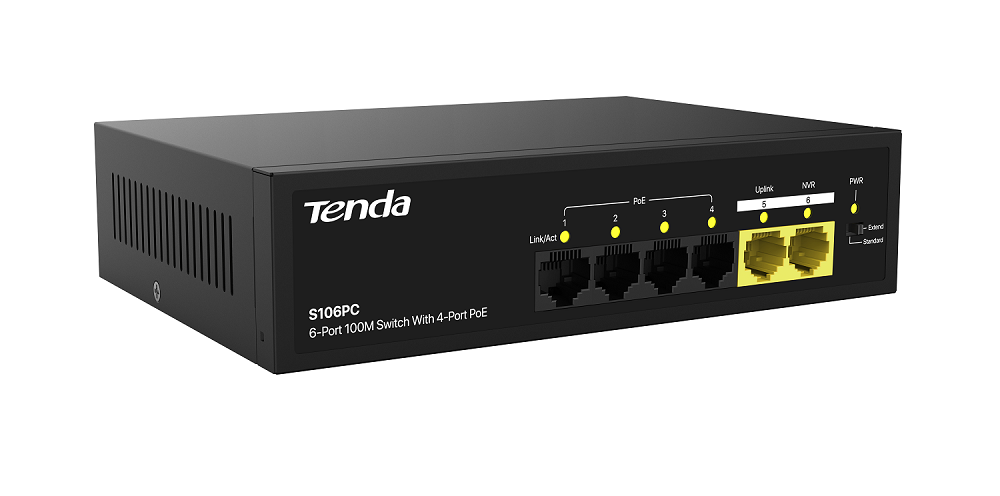 Доступный коммутатор Tenda S106PC оснащён шестью портами 10/100 Мбит/с. Все порты поддерживают функцию Auto MDI/MDIX, которая позволяет не беспокоиться о типе кабеля, так как технология самостоятельно определит его и выполнит необходимые настройки.