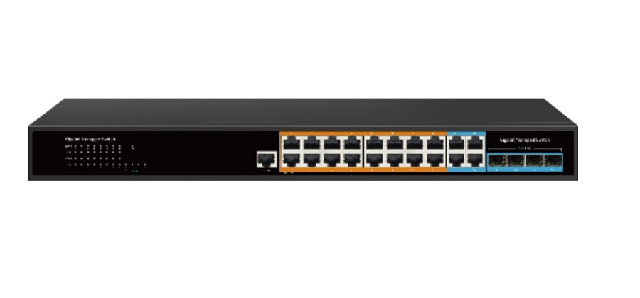 16 портов до 1000Mbps RJ-45, PoE 4 порта до 1000 Mbps RJ-45, Uplink (combo) 4 порта до 1000 Mbps SFP 1 консольный порт RJ-45 PoE Стандарты: IEEE 802.3af/at, Active POE type A, контакты 1/2(+),3/6(-), Watchdog, PoE Бюджет 235 Вт, Коммутационная способность 40 Гбит/с, Рабочая температура: от -30°C до 45°C, Комплект для крепления в 19″ стойку, Размеры:  440х180х45 мм, Вес: 3 кг