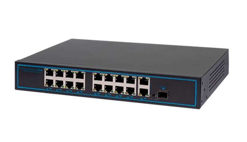 19 портовый РoЕ коммутатор неуправляемый                                                                                16 портов 10/100 Мбит/с PoE, 2 порта 10/100/1000 Мбит/c UPLINK, 1 порт 1000 Мбит/c SFP • Автоматическое определение MDI/MDIX на всех портах • Ethernet/Fast Ethernet: полный дуплекс/ полудуплекс • Поддержка стандартов PoE IEEE 802.3af • Подача питания на устройство: до 15.4 Вт • Максимальная мощность: 240 Вт (48V, 5A) • Количество портов PoE: 16 • Напряжение PoE на каждом порту: 48В • Расстояние до потребителя PoE до 250м • Таблица MAC-адресов: 4K.  НЕ в стойку.