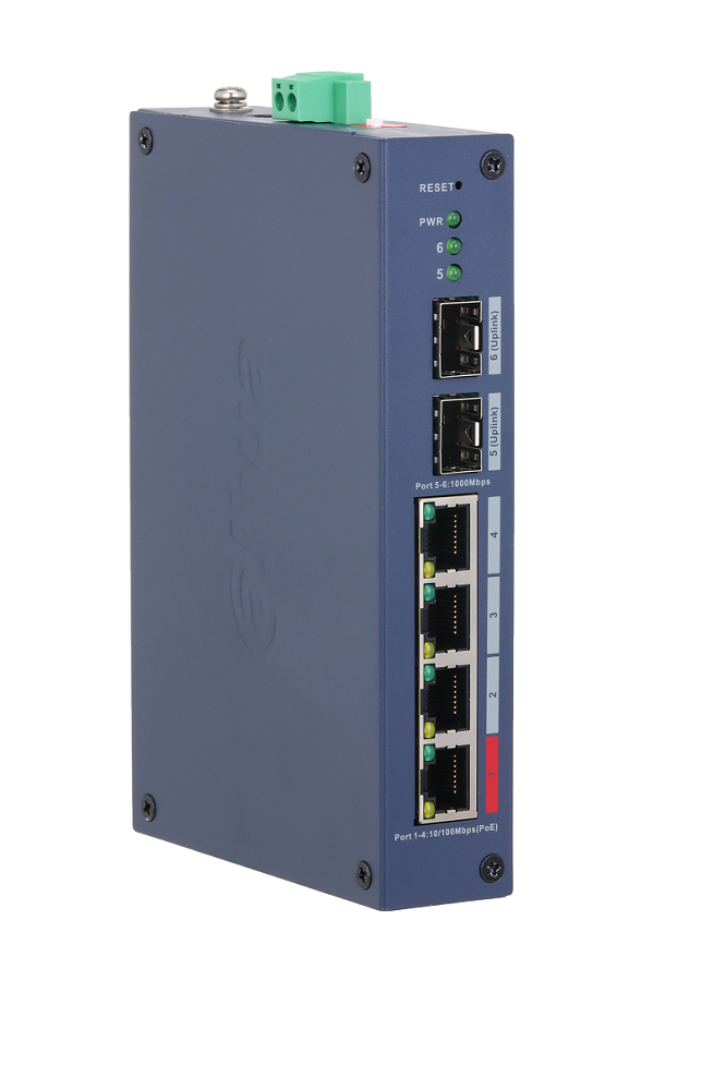 Порты: 4 RJ45 10/100Мбит/с (PoE/PoE+/Hi-PoE), 2 SFP 1000Мбит/с (uplink); мощность PoE: порт 1 до 90Вт, порты 2~4 до 30Вт, суммарно до 90Вт; PoE watchdog, передача до 250м; питание: 48~57В(DC); грозозащита: до 6кВ; рабочая температура: -30°С~+65°С; IP30, IK06; монтаж на DIN-рейку.