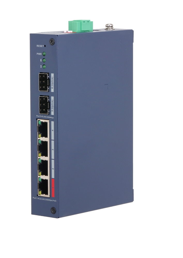 Порты: 4 RJ45 10/100/1000Мбит/с (PoE/PoE+/Hi-PoE/IEEE 802.3bt), 2 SFP 1000Мбит/с (uplink); мощность PoE: порт 1 до 90Вт, порты 2~4 до 30Вт, суммарно до 90Вт; PoE watchdog, передача до 250м; питание: 48~57В(DC); грозозащита: до 6кВ; рабочая температура: -30°С~+65°С; IP30, IK06; монтаж на DIN-рейку.