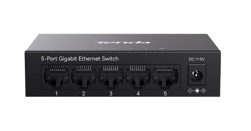 Обновлённый Tenda TEG1005D имеет 5*10/100/1000 Мбит/с  порта RJ45, скорость полнодуплексной передачи до 2000 Мбит/с, пересылка на линейной скорости по всем портам и большая емкость кэша обеспечивают своевременную передачу больших файлов и стабильную потоковую передачу видео.