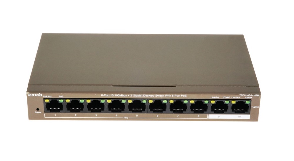 —TEF1110P-8-102W 8-портовый коммутатор 10/100 Мбит/с + 2 гигабитных порта с 8-портовым PoE