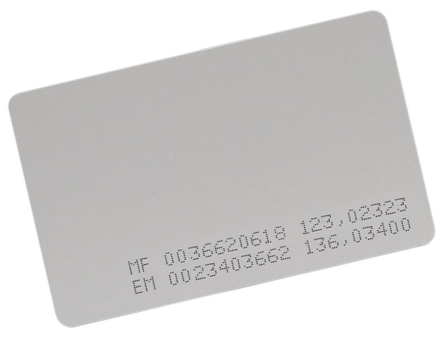 Бесконтактная карта доступа форматов Mifare (13,56 МГц) и EM-Marin (125 кГц). Предназначена для идентификации пользователей в системе контроля доступа по коду, содержащемуся в конкретной карте. Выполнена в тонком корпусе, подходящем под печать на специальном принтере. Габаритные размеры: 86×54×0,8 мм. Идентификационный номер нанесен на поверхность карты.