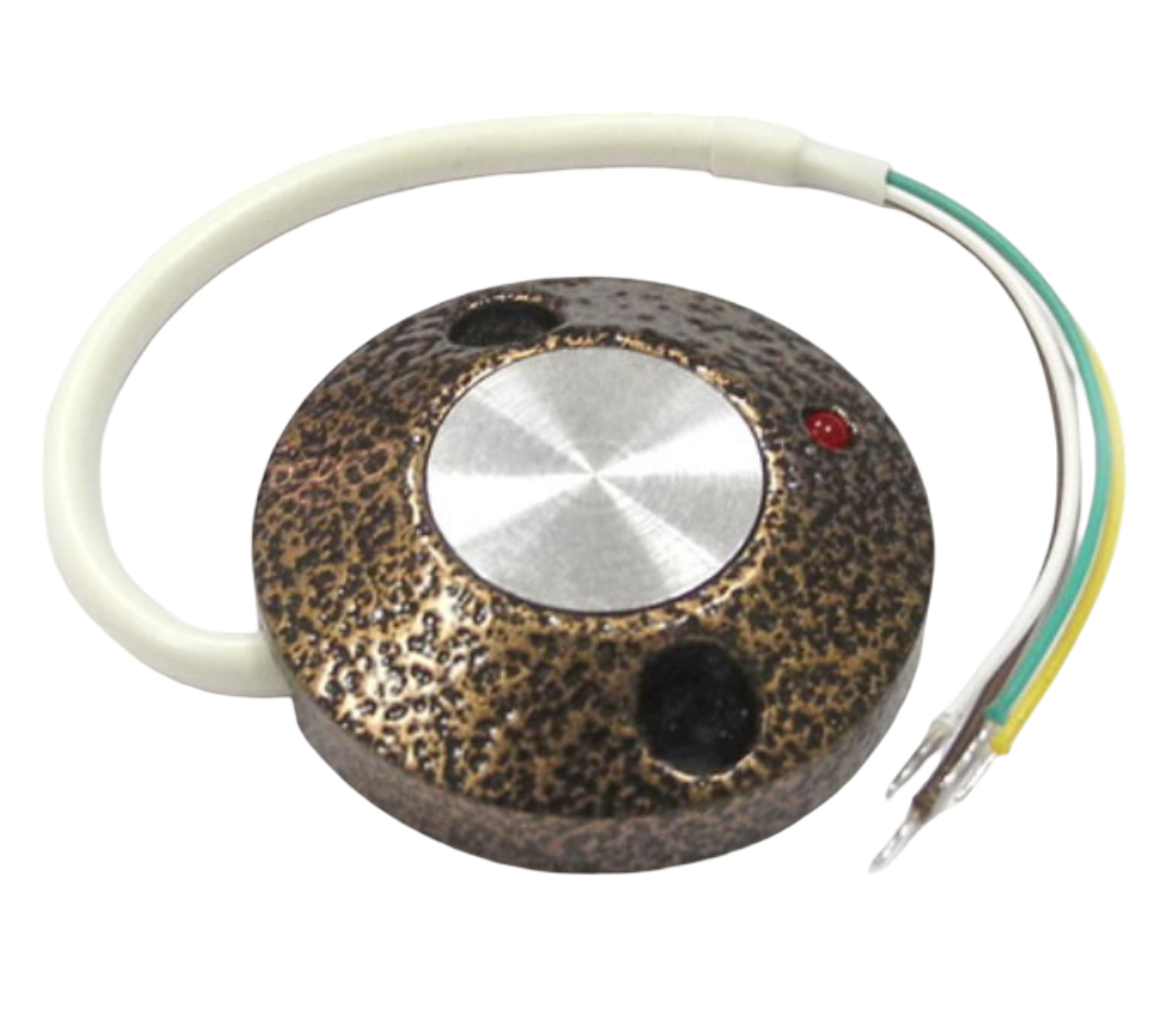 Кнопка выхода накладная, металлическая с индикацией, НО; 38мм (D) х10мм, покраска корпуса порошковой эмалью ; масса брутто: 24,8 г.