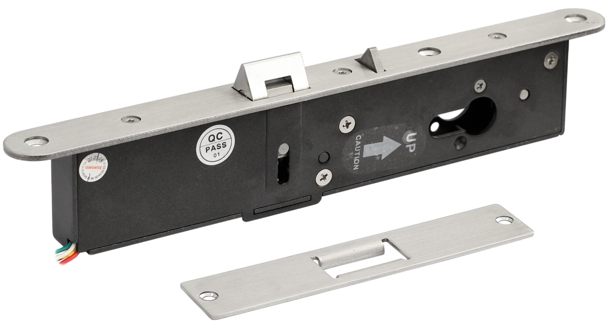 Электромеханический замок, врезной, управление от цилиндра, сила удержания 450 кг, НO/НЗ, мониторинг НР/НЗ/ОБЩ, питание 12-24В DC/AC, 300мА, материал - Нержавеющая сталь, -30...+55°С, 210х25х52 мм, запорная планка: 150х30х1,5 мм.