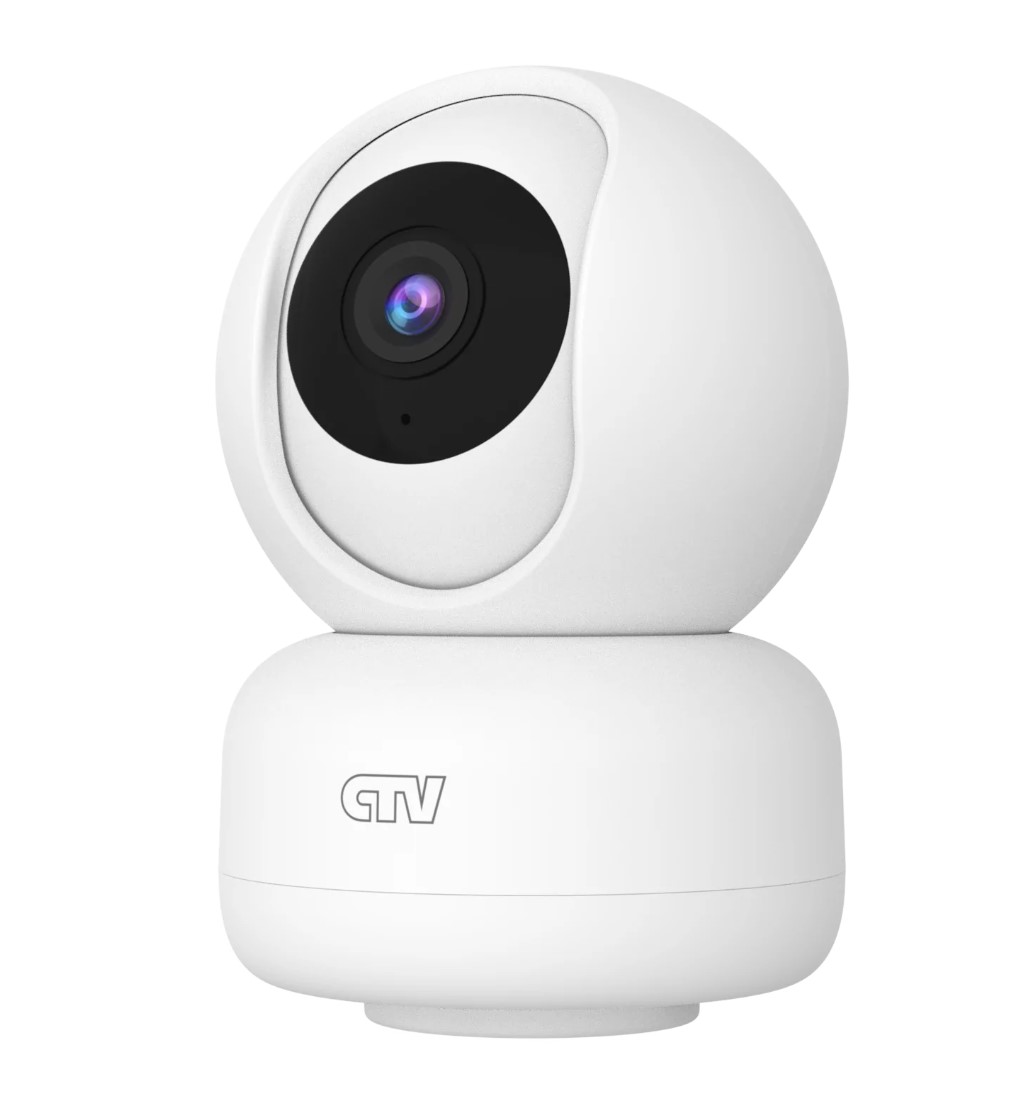 Wi-Fi PTZ видеокамера с разрешением 4Мп,  функцией "День/Ночь" и ИК подсветкой, автоматическое слежение, детекция движения,  двусторонняя аудиосвязь, слот для SD-карты (128 ГБ), поддержка P2P (приложение CTV Home), для установки внутри помещений.
