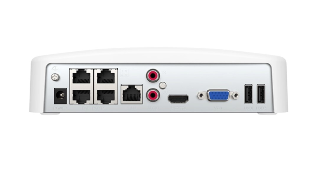 H.264, H.265, H.264+, H.265+;1 SATA для HDD до 10Тб; 4 независимых 100M PoE интерфейса; 1 RJ45 10M/100M Ethernet;