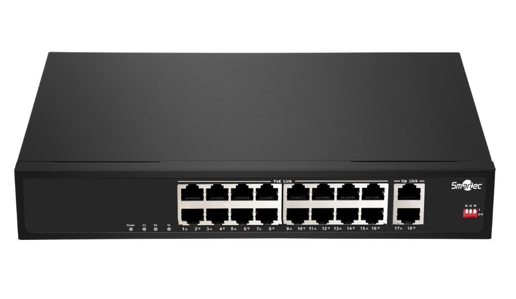 Компания Smartec сообщила о поступлении в продажу бюджетных PoE коммутаторов неуправляемого типа ST-NS316MB-GD. Новинка на 16 портов PoE проста в настройке и обслуживании. Скорость передачи данных, тип обжима кабеля (MDI/MDIX) и мощность PoE нагрузки определяются автоматически.
